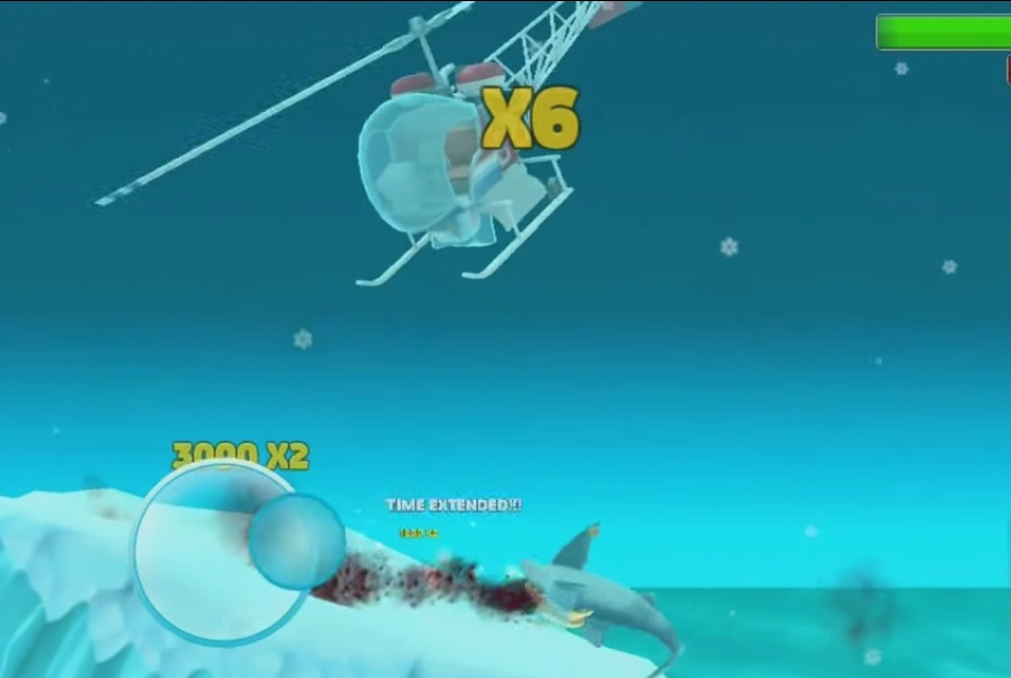 Helicopters function was like the limited edition Enemy Santas that were included in the 2013 and 2014 Christmas updates. Helicopters would fly above the water, dropping depth charges which explode at a certain depth unless run into. These can be eaten by Megalodon and above.